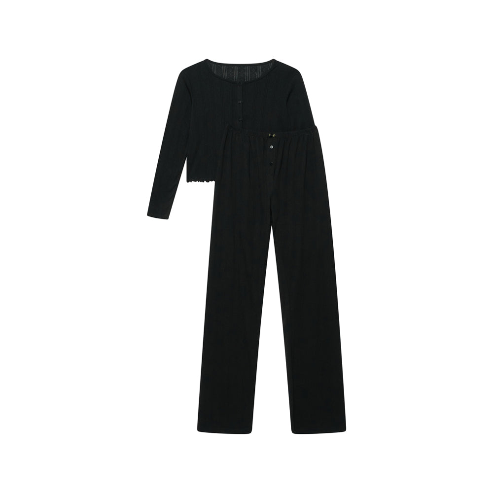 This cosy and chic pointelle PJ set is made from a quality 100% pure cotton for long-lasting softness. The cardigan is long-sleeved, with lettuce edge detail and has a front button closure design. Paired with our cool girl, straight leg, elasticated waist band matching short finished with three mini centre buttons. Mix and match with our pointelle bra or soft sleep crop for endless elevated home fits.