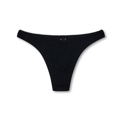 Pointelle Thong Knicker- Black Sale